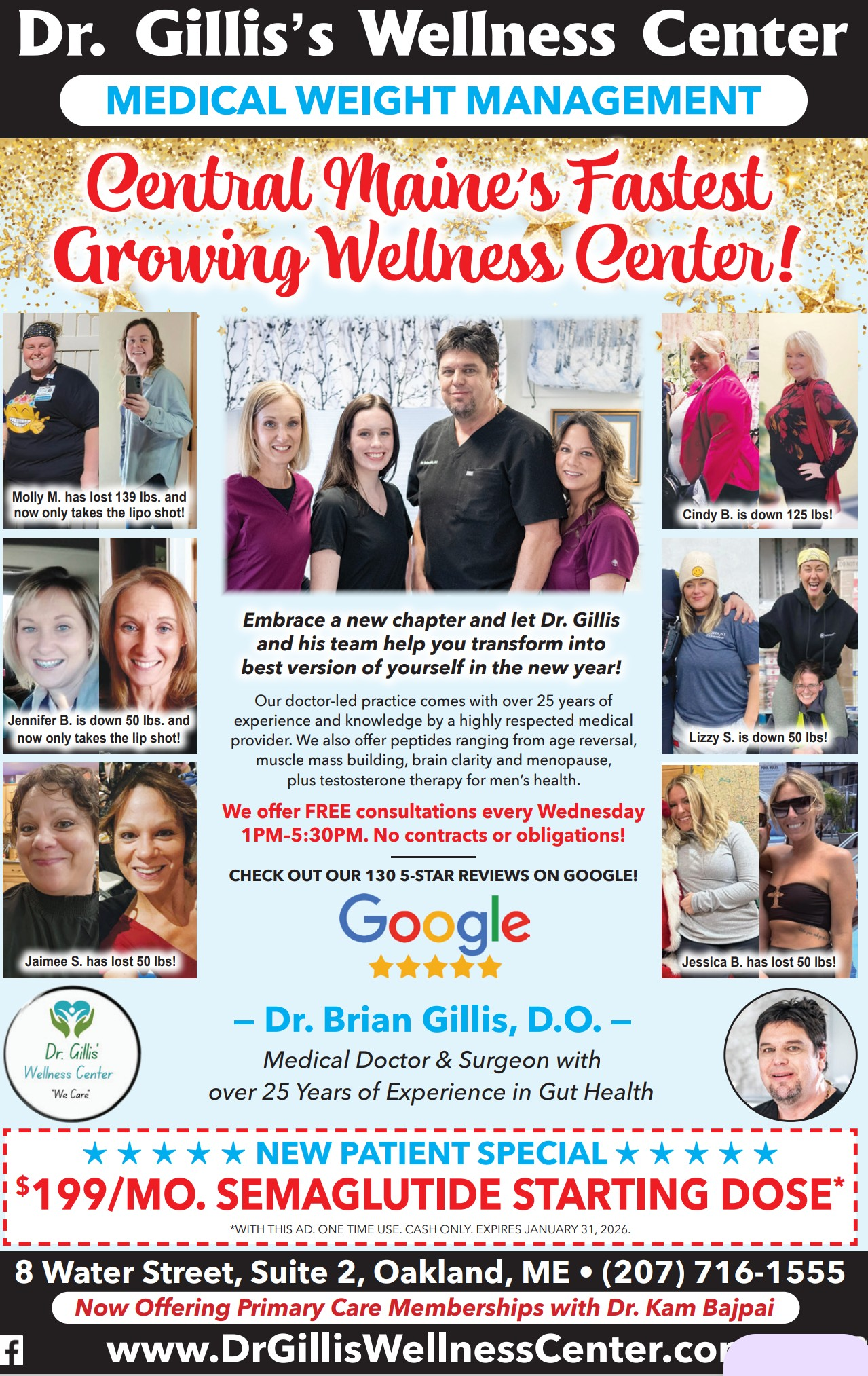 This led to the launch of his cutting-edge weight loss clinic, the first in Central Maine to offer Semaglutide—a nationally recognized GLP-1 medication for medical weight loss.